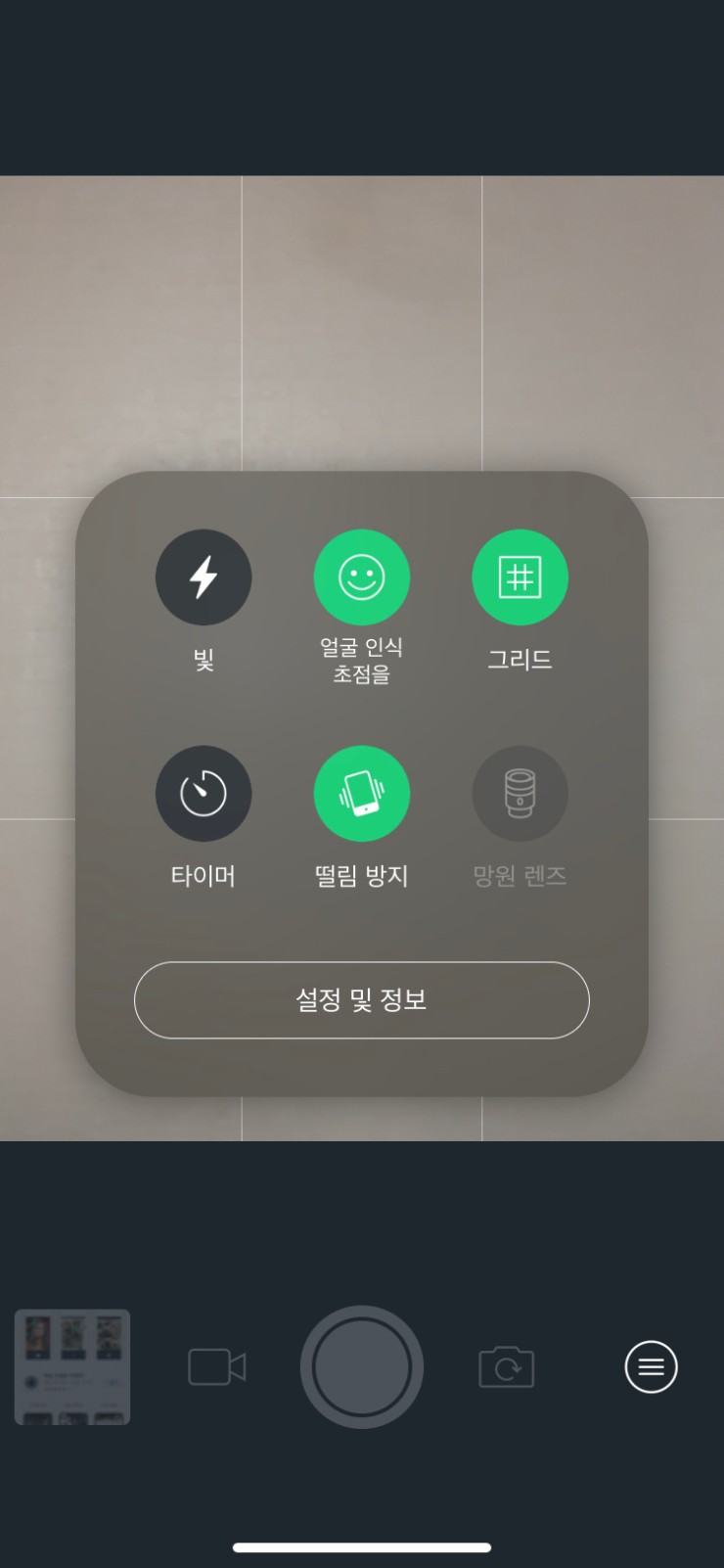 다른 기능으로는 위와 같이 간단합니다. 너무 간단해서 싫으신 분들도 계실테지만 무음 촬영 하나만을 목적으로 하는 어플로는 요것을 사용하시면 됩니다.