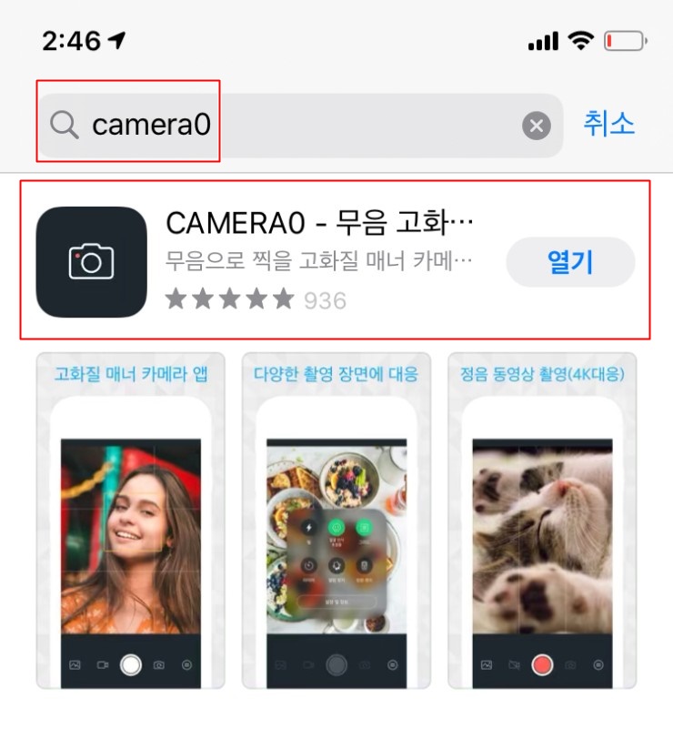 먼저 앱스토어에서 'camera0'라고 검색을 합니다. 그러면 CAMERA0 어플이 나옵니다. 요것을 설치하시면 됩니다