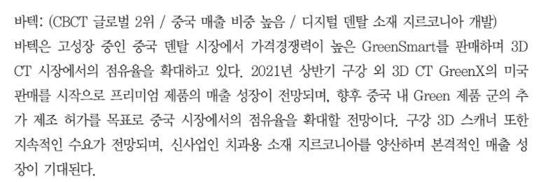 바텍은 중국 매출 비중이 높고, 또 가격경쟁력과 점유율도 괜찮다고 합니다.