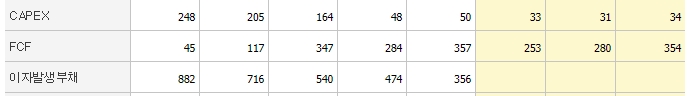 CAPEX, 잉여현금흐름(FCF) 모두 좋습니다.