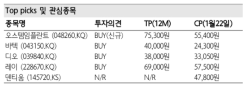 하나금투의 탑픽 종목들입니다. 사실 다른 종목들은 주가가 상승을 많이 한 상태입니다. 그나마 바텍이 덜 올라서 저의 주목을 끌었던 것이구요.