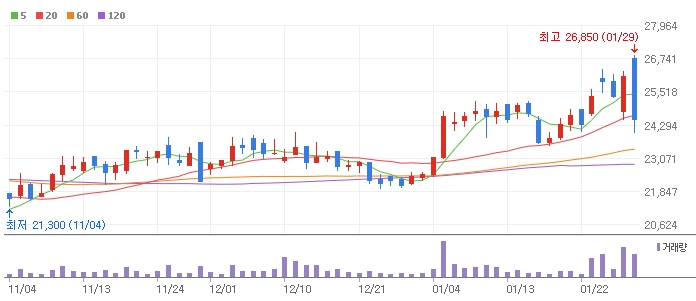 목표주가는 40,000원입니다. 오늘 주가가 24,500원입니다.