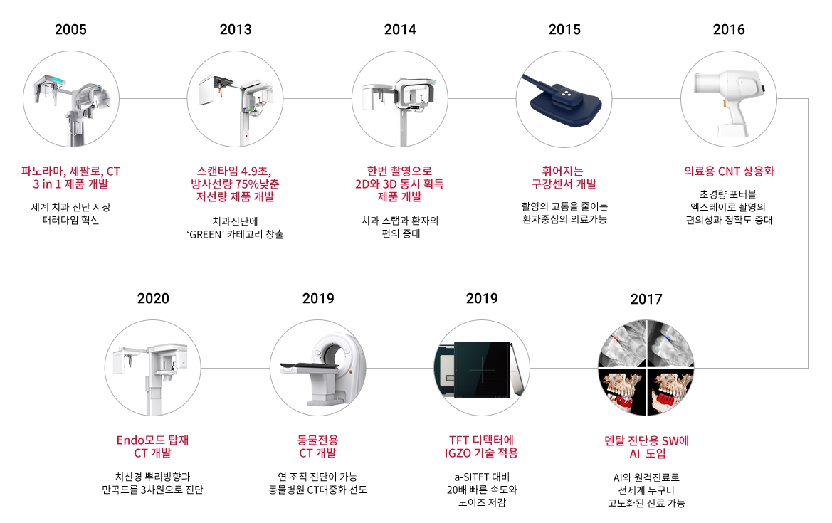 그리고 바텍은 상당히 기술력도 있고 연구개발도 잘하는 기업으로 보입니다. 홈페이지에서 가져온 것들인데요, GreenSmart라는 것도 개발하여 판매하고, 특히 3D CT 시장에서의 점유율이 늘어나고 있다고 합니다.