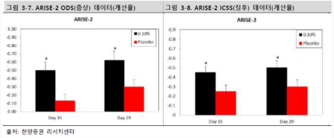 먼저 발표된 임상 2상결과 발표로는 28일 기간 P밸류갑이 0.05%, 0.1%로 통계적으로 유의한 개선을 보였다고 나왔습니다.