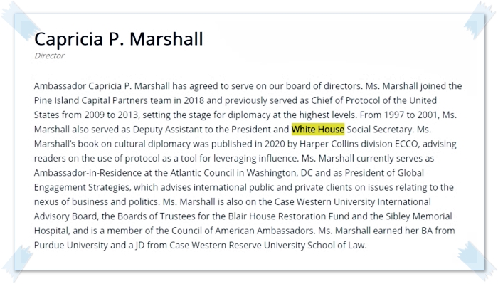 스튜어트 홀리데이, 카프리시아 마샬 둘다 백악관 사람들입니다.