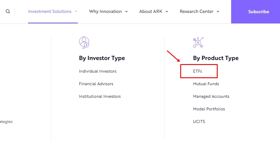 우리는 ETF 구성종목, 즉 ARK Invest가 발굴한 기업들을 봐야 하니까 ETFs로 갑니다.