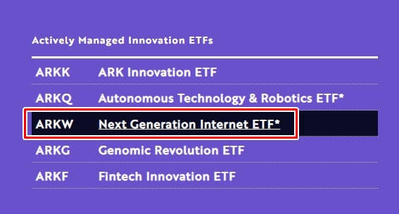 예시로 차세대 인터넷 기술 ETF인 ARKW를 보겠습니다.