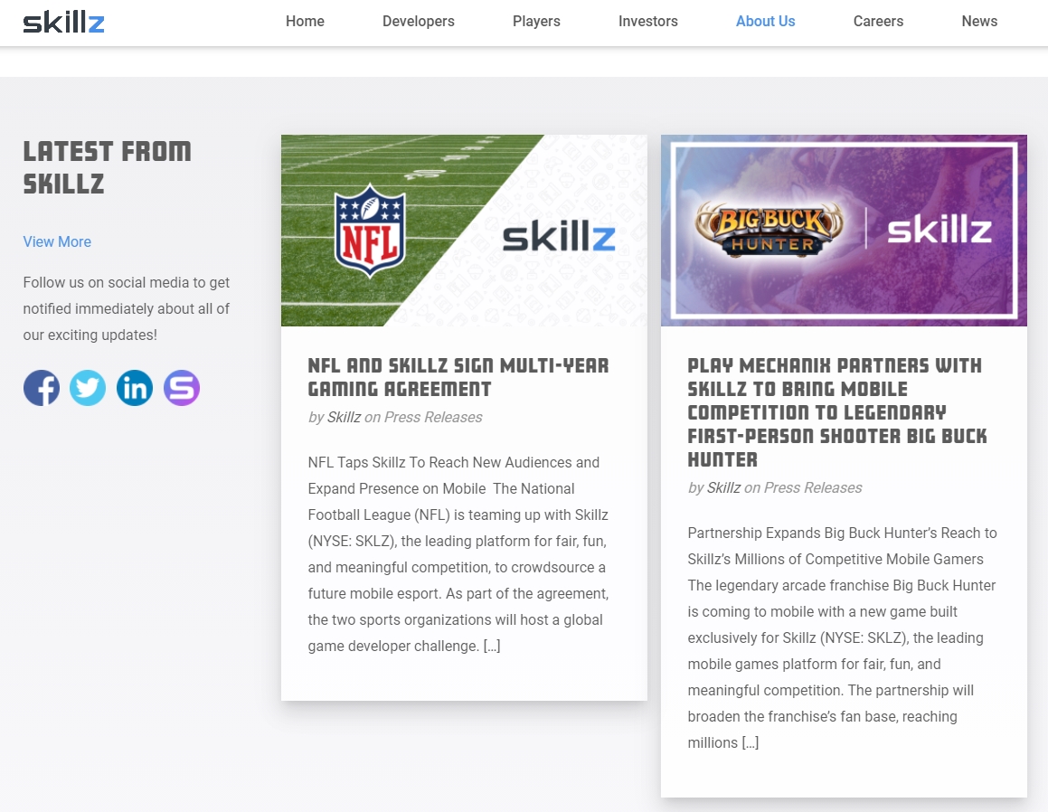 스킬즈는 e스포츠 모바일 게임 플랫폼을 개발한 회사이구요, 이게 조금은 특이합니다. 단순 게임을 제작해서 출시하는게 아니라 스킬즈 플랫폼이라고 해서 개발자들이 게임 내에서 경쟁이 가능한 캐주얼 스포츠 게임 등을 만들 수 있게 플랫폼을 제공합니다. 그리고 나서 이 게임에 참여한 사람들이 이기게 되면 보상 그러니까 진짜 돈을 받을 수 있도록 하는 것이죠.