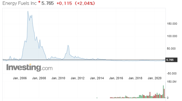 에너지퓨얼스는 저탄소 혹은 아예 탄소를 배출하지 않는 에너지 원료인 우라늄을 생산하는 미국의 선도적인 회사입니다. 바이든 행정부가 환경문제에 상당히 우호적이고 탄소배출에 대해서도 엄격한 규제를 예고한 만큼 상당히 주목을 받는 분야이죠. 여기에 희토류 생산과 관련도 있습니다.