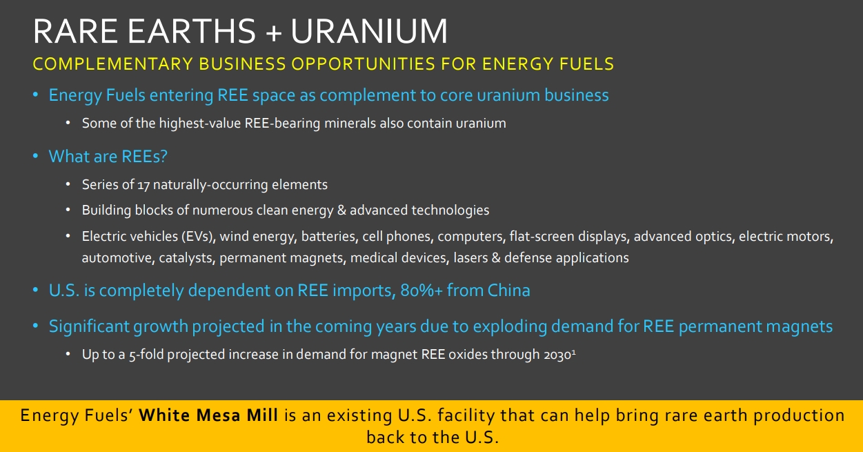 이 외에도 바냐듐과 다른 희토류 가공 등에 있어서도 에너지 퓨얼스는 상당한 주목을 받게 될겁니다.